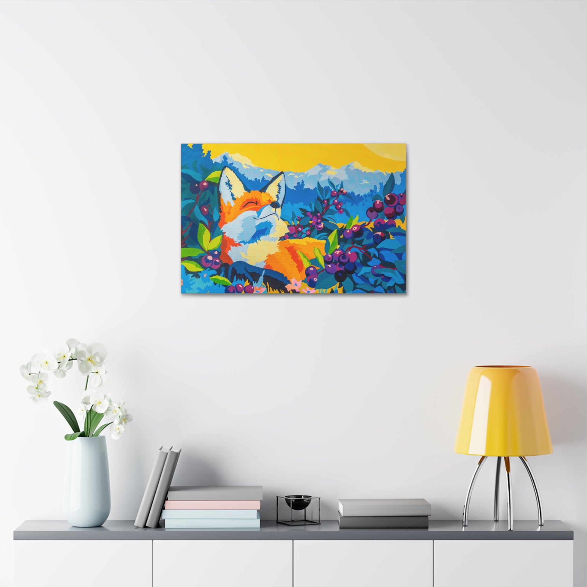 Enjoy this huckleberry-loving sleepy fox on high quality hand-stretched canvas.